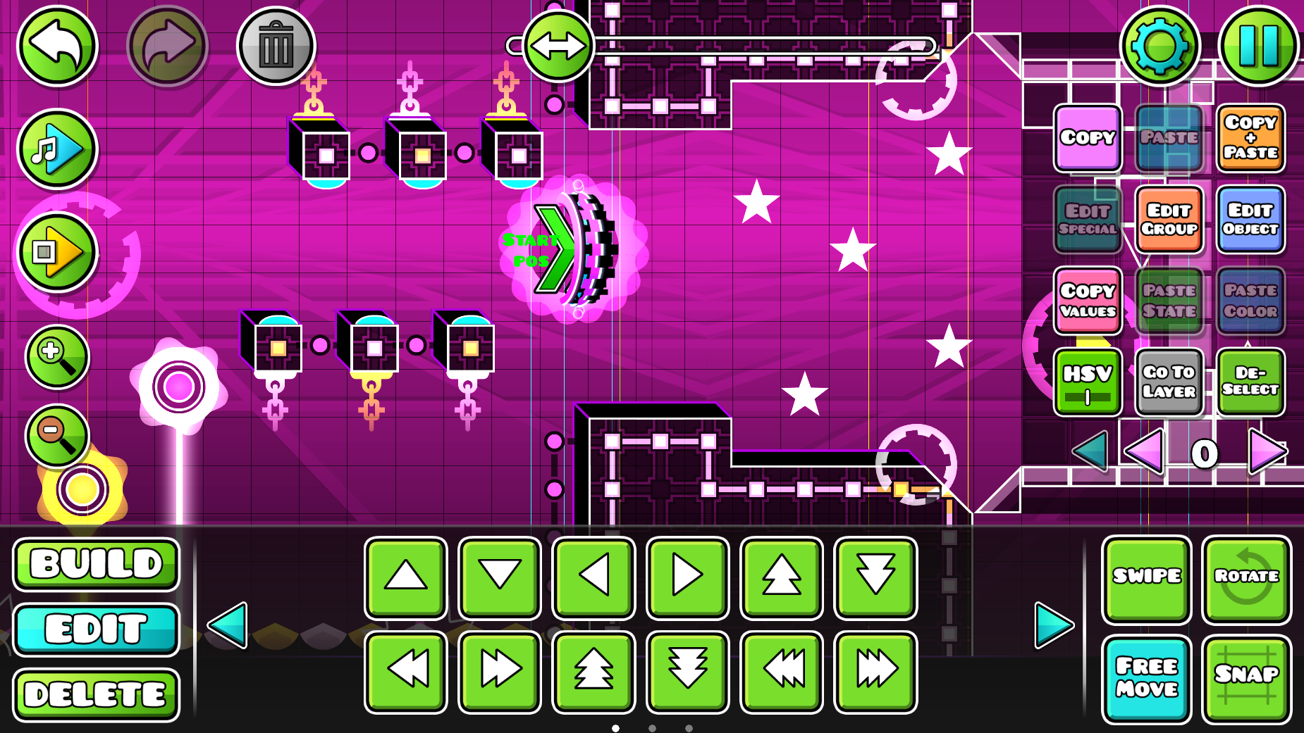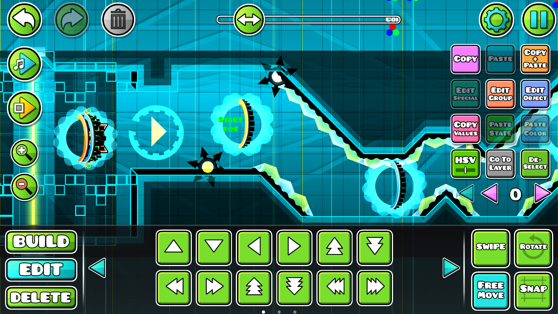 El primer paso para usar start pos correctamente es abrir la copia del nivel en el editor. Una vez dentro, debemos movernos hasta la zona que queremos practicar y analizar cómo entra el icono a esa parte. Este análisis es fundamental. Muchos errores de práctica vienen de colocar la start pos con prisa, sin estudiar la transición anterior. En Geometry Dash, una sección difícil rara vez vive aislada: casi siempre depende del portal, la velocidad o la orientación con la que llegamos desde unos segundos antes.
