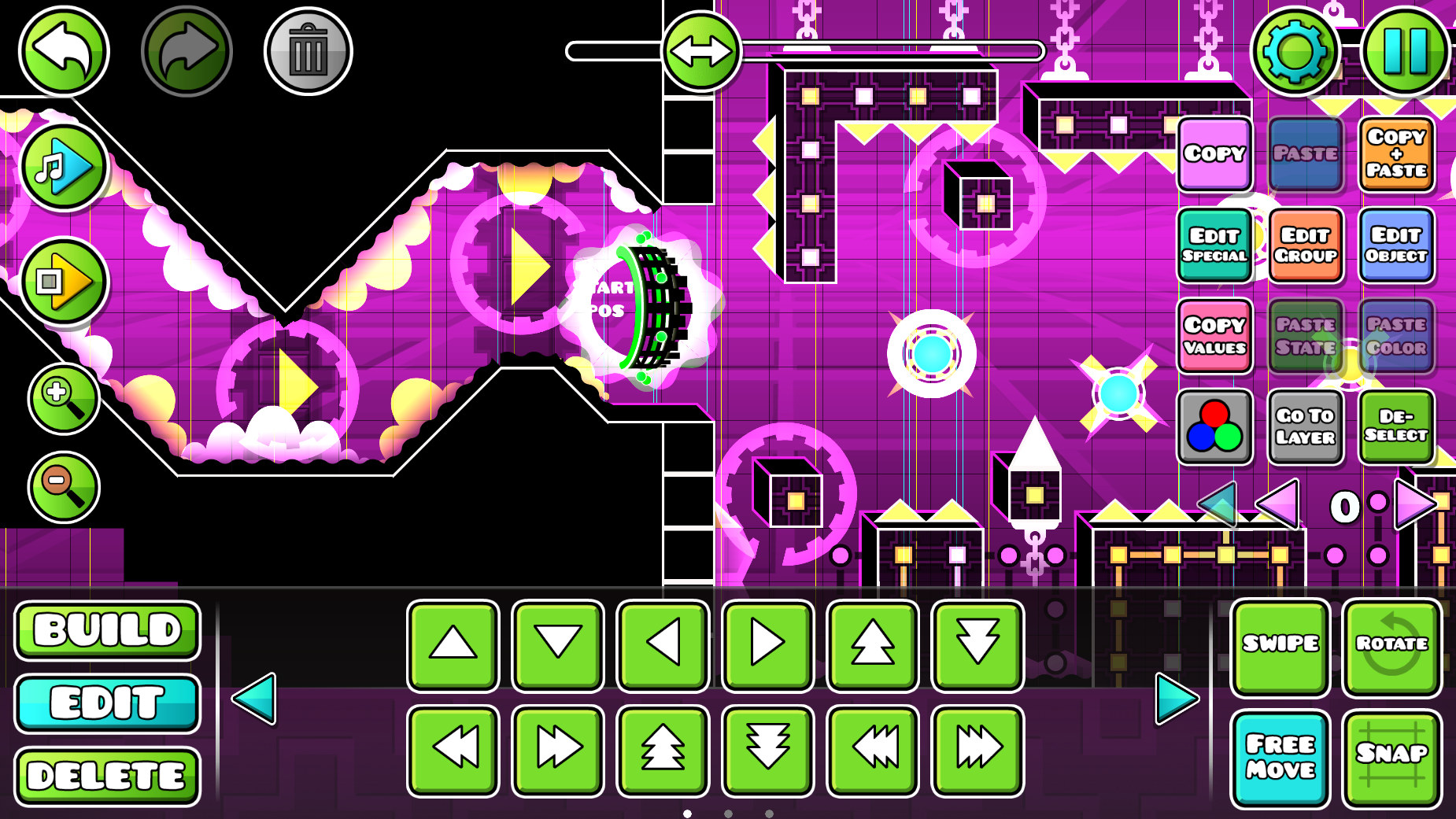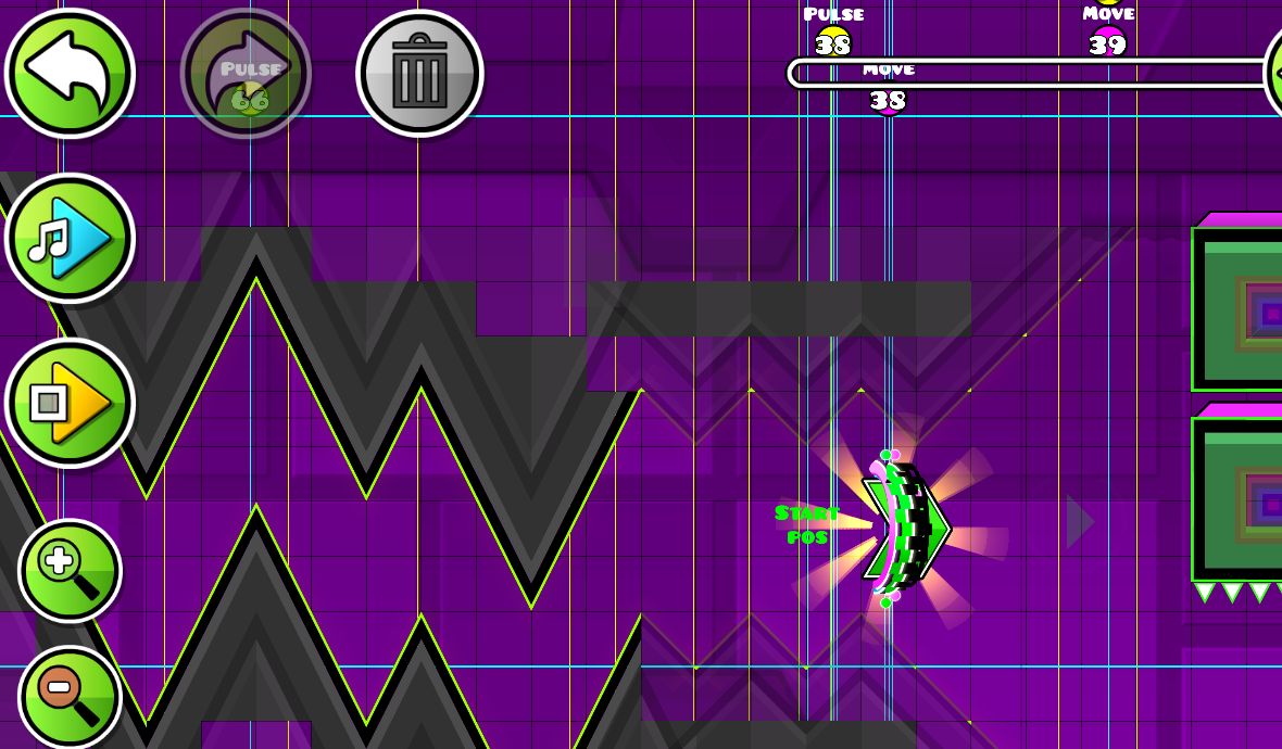 También son ideales cuando un nivel tiene tramos con mucha precisión. Pensemos en las partes difíciles de Deadlocked, Clubstep o Theory of Everything 2: waves cerrados, cambios de velocidad, portales muy seguidos, duales o entradas donde un click temprano arruina toda la sección. En esos casos, los checkpoints del práctica suelen romper el ritmo y no nos dejan entrenar la entrada real de la parte. La start pos, en cambio, permite construir una rutina mucho más inteligente: practicar la entrada, luego la parte central, luego la salida, y finalmente unirlo todo en una mini-run.