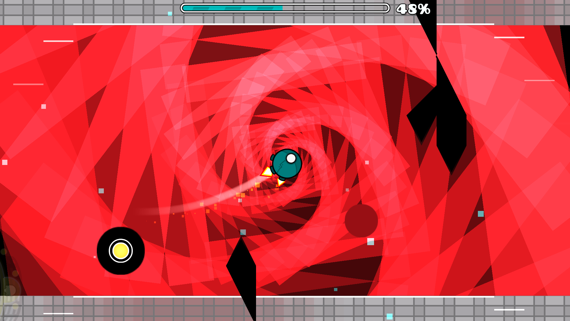 También ayuda que su dificultad dependa mucho del diseño del nivel. En tramos normales, la ball es muy cómoda porque el jugador solo tiene que entender cuándo cambiar de lado. No suele dar la misma sensación de caos que un UFO mal ajustado ni la exigencia de pulso fino de otros vehículos. Eso la hace bastante amable, sobre todo en niveles fáciles y medios.